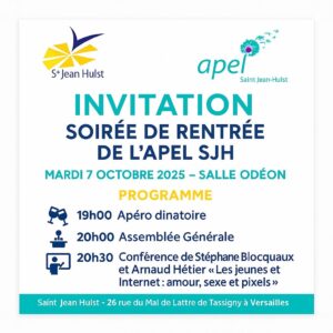 L’Apel est VOTRE association. Rendez-la vivante et représentative en venant participer à la soirée de rentrée que nous vous proposons mardi 7 octobre.