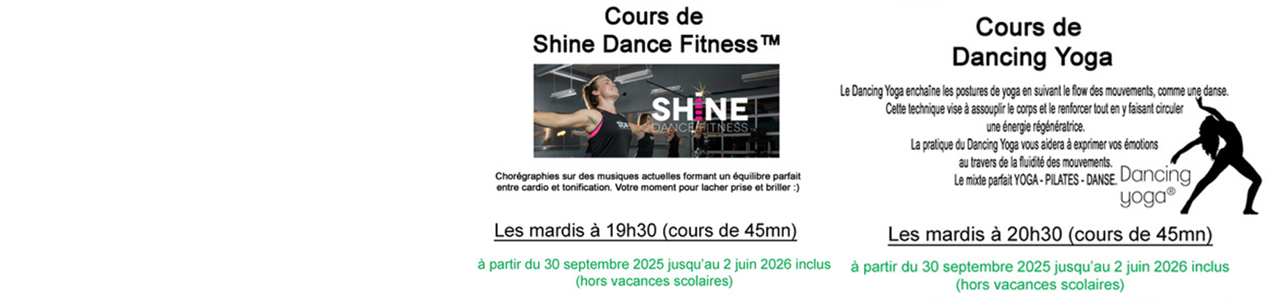 Les mardis soirs - Cours de SHINE DANCE FITNESS™ et de DANCING®YOGA